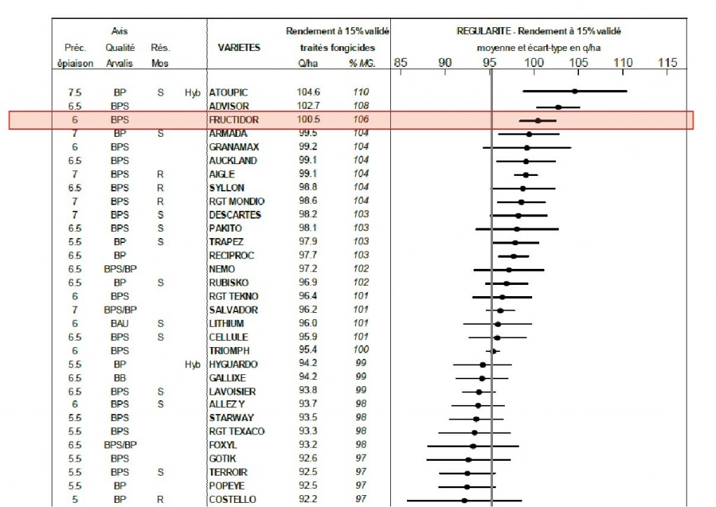 Les premiers résultats provisoire d’Arvalis sont publiés et Fructidor arrive très régulièrement dans le top des variétés les plus productives.