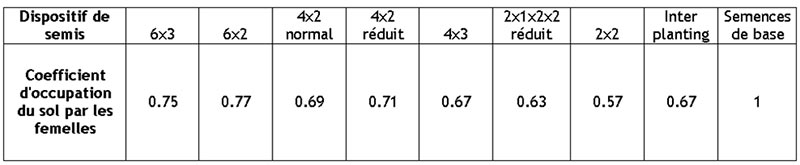 Tableau 3 : Coefficient d’occupation du sol par les femelles