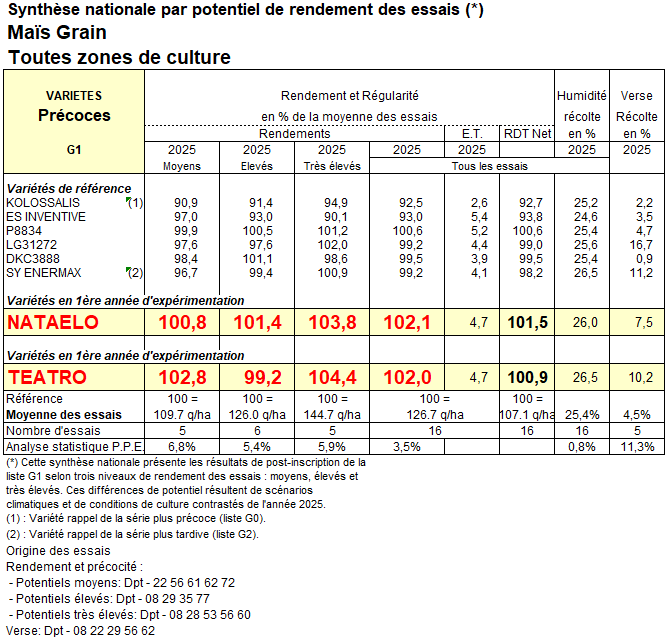 RESULTATS ESSAIS ARVALIS 2025