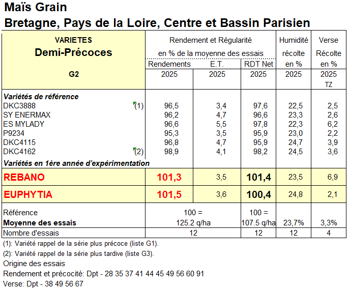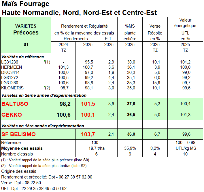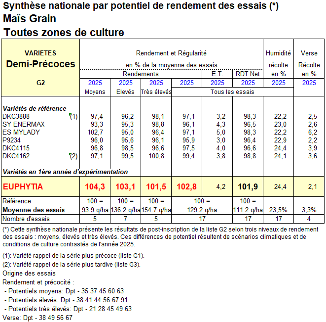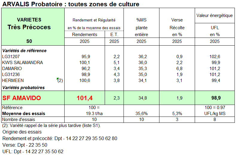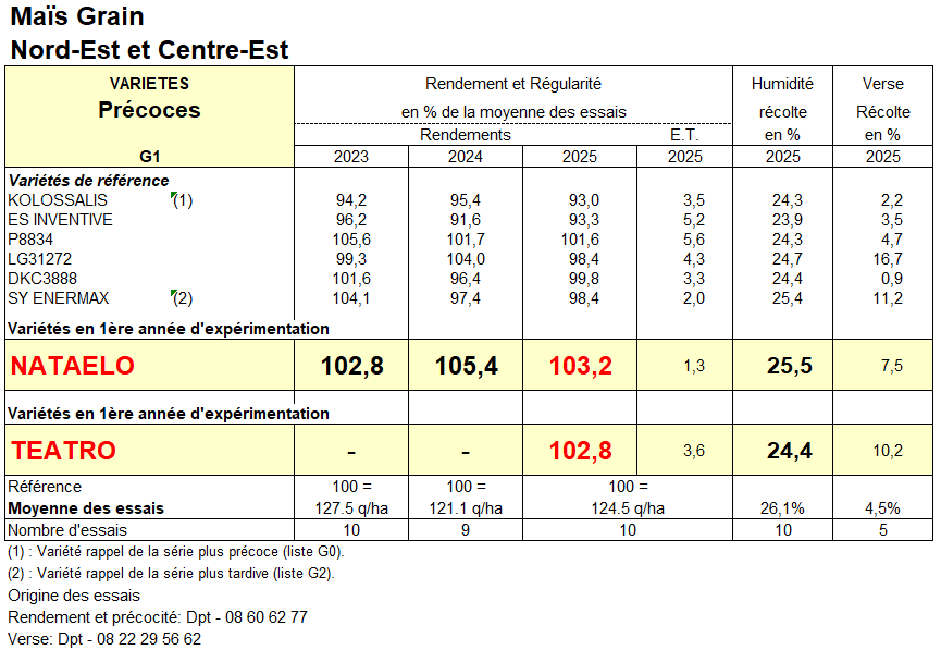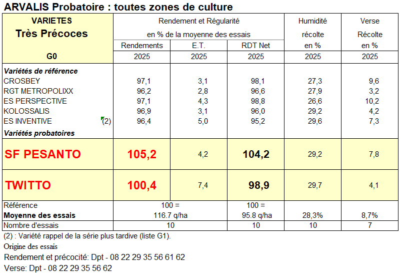 Retrouvez ci-dessous les résultats de nos variétés dans le réseau ARVALIS Post-Inscrtiption pour la région Hauts-de-France :